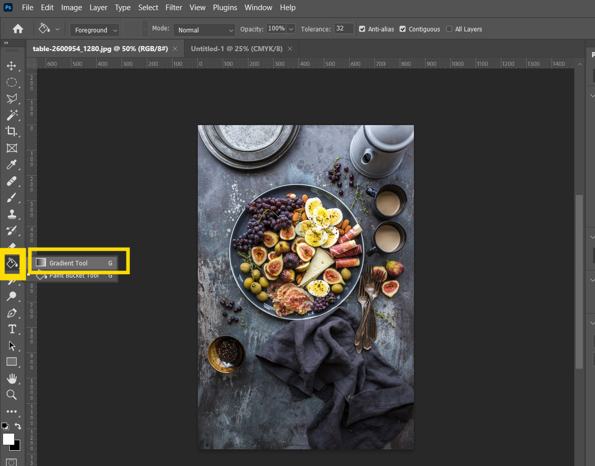 레이어 마스크가 적용되었다면 다시 도구툴 박스로 돌아와서 그라디언트 툴을 선택하여