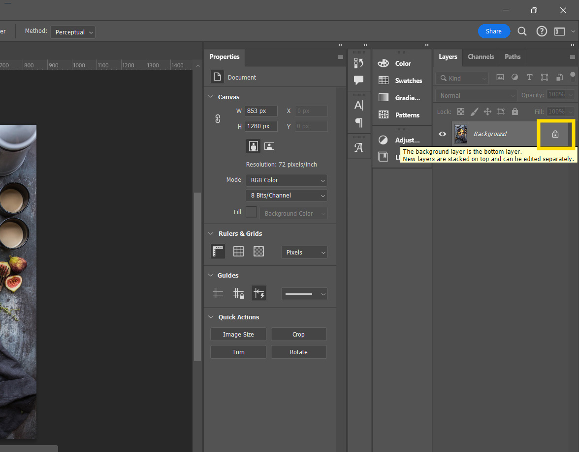자물쇠 아이콘을 더블 클릭하면 이미지가 백그라운드에서 레이어로 변경됩니다.